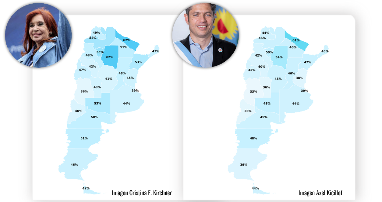 En el total nacional, la ex presidenta alcanza 46% de imagen positiva contra 44% del gobernador bonaerense. La brecha es corta, pero no aislada: cuando se revisan los resultados por provincia, el patrón se repite y le da sustento a esa diferencia.