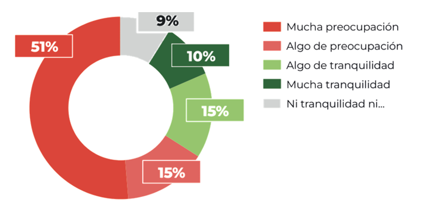 Más de la mitad de los encuestados declara sentir mucha preocupación por la situación económica. Al mismo tiempo, una amplia mayoría reconoce que hoy le resulta difícil o muy difícil llegar a fin de mes, lo que refleja el peso que tienen los ingresos reales en la vida cotidiana.